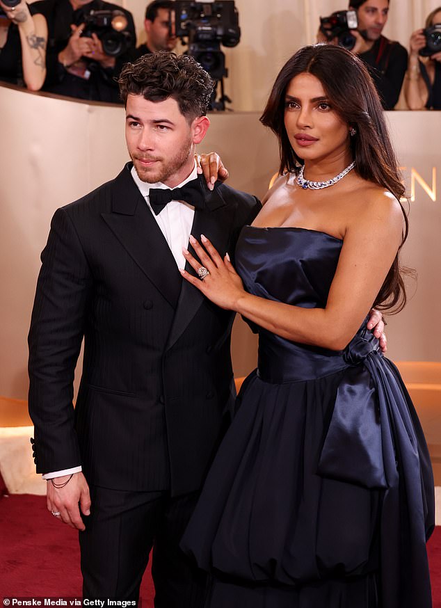 Chopra strode down the red carpet alongside her husband, Nick Jonas, and the pair struggled to keep their hands off each other.